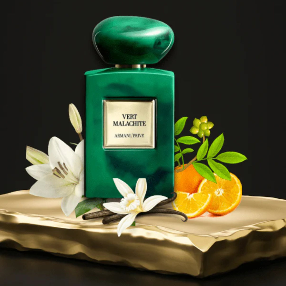 Armani Prive Vert Malachite de Giorgio Armani é um perfume Amadeirado Aromático Compartilhável. Armani Prive Vert Malachite foi lançada em 2016. O perfumista que assina esta fragrância é Fabrice Pellegrin. As notas de topo são: Laranja Amarga e Petitgrain. As notas de coração são: Jasmim Sambac, Ylang Ylang e Pimenta Rosa. As notas de fundo são: Lírio, Baunilha e Benjoim.