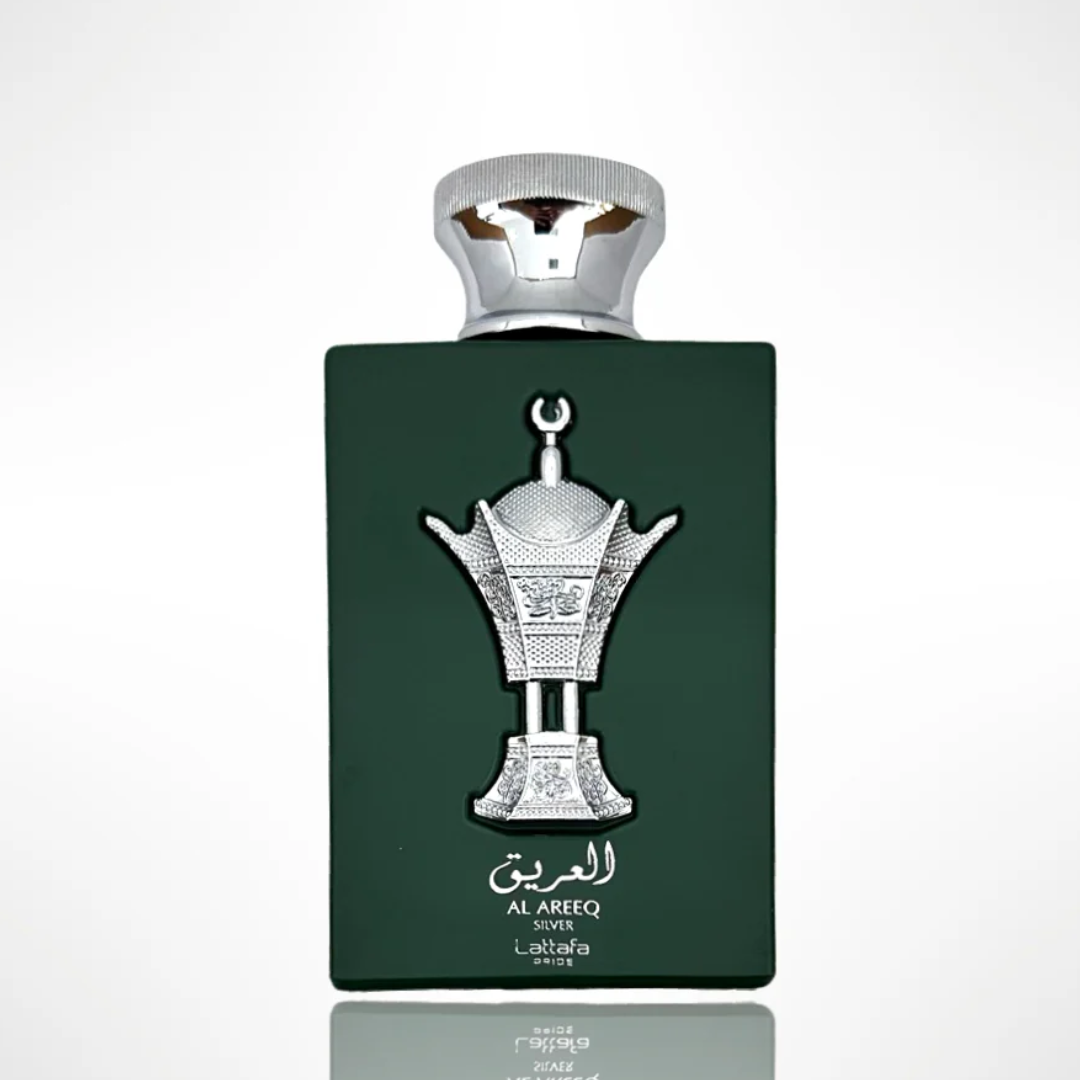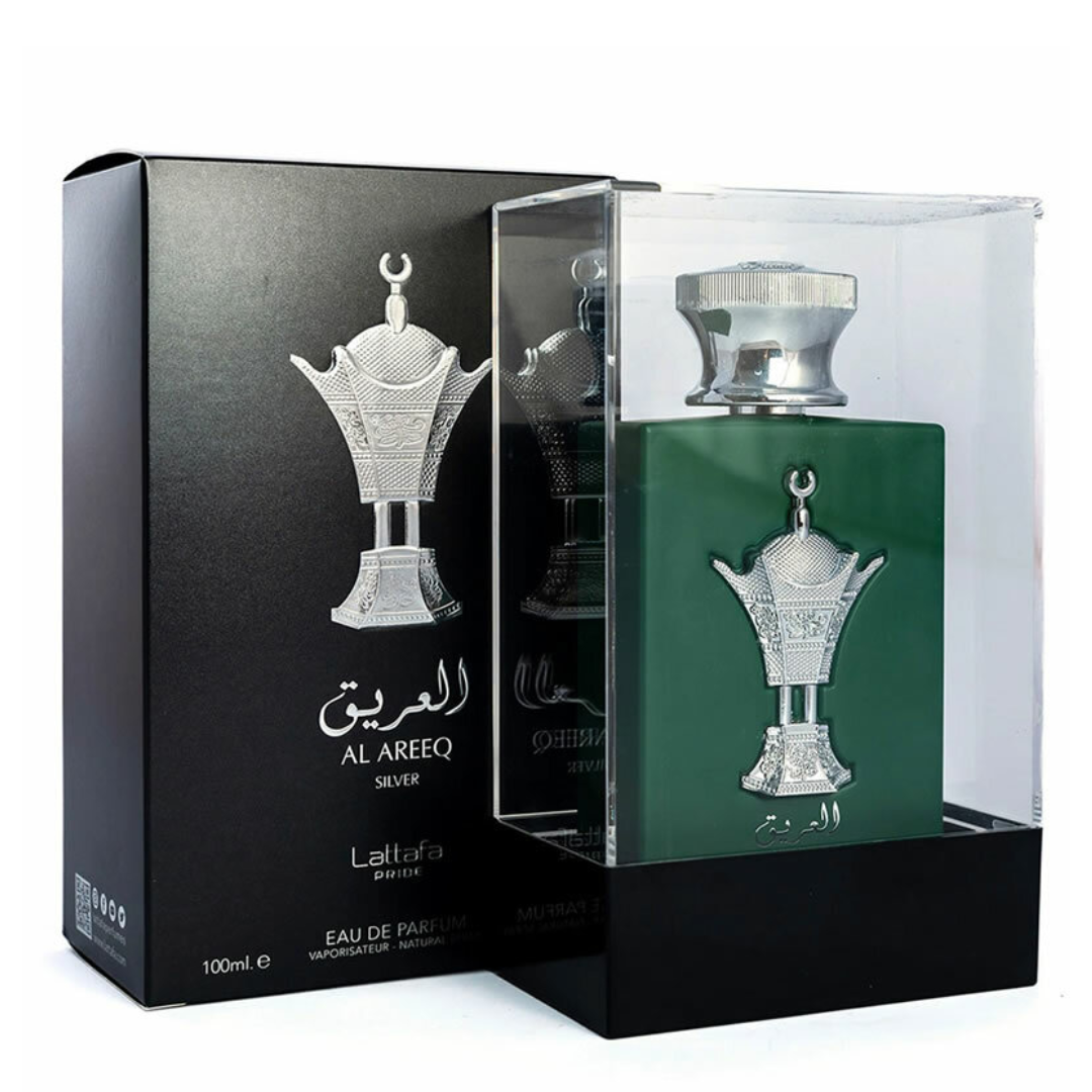 Al Areeq Silver de Lattafa Perfumes é um perfume Compartilhável. Esta é uma nova fragrância. Al Areeq Silver foi lançada em 2022. As notas de topo são: Cardamomo, Lavanda e Maçã. As notas de coração são: Tabaco, Cipreste, Agarwood (Oud) e Jasmim. As notas de fundo são: Couro, Almíscar, Sândalo e Baunilha.