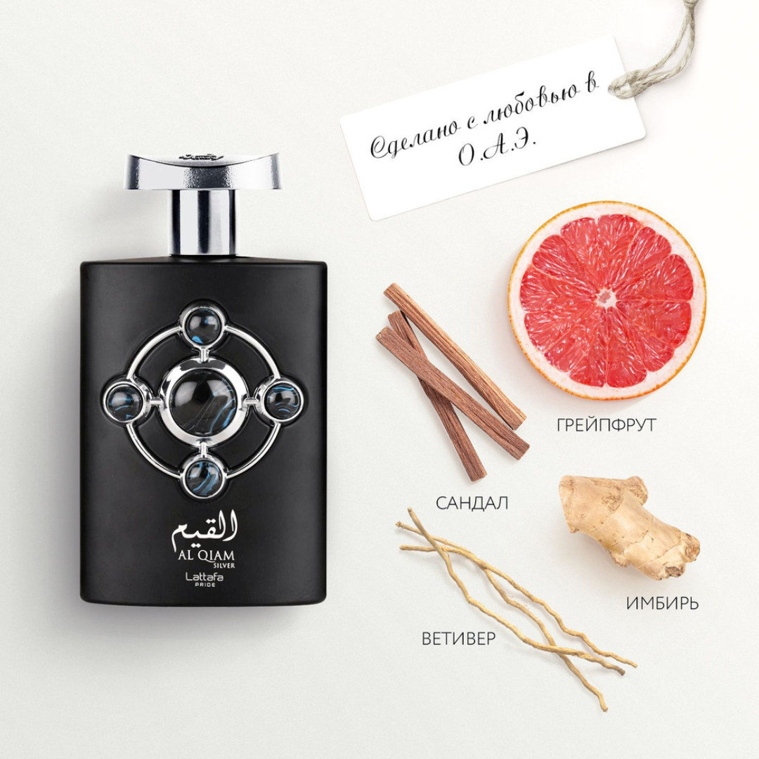 A fragrância quente, picante e amadeirada de Al Qiam Silver é um perfume carismático para mulheres e homens da casa de design da Lattafa Perfumes. No início são aromas fascinantes de gengibre e toranja, enquanto as notas de sândalo e ambroxan enchem o coração. A base é atraente com dicas de almíscar e vetiver.
