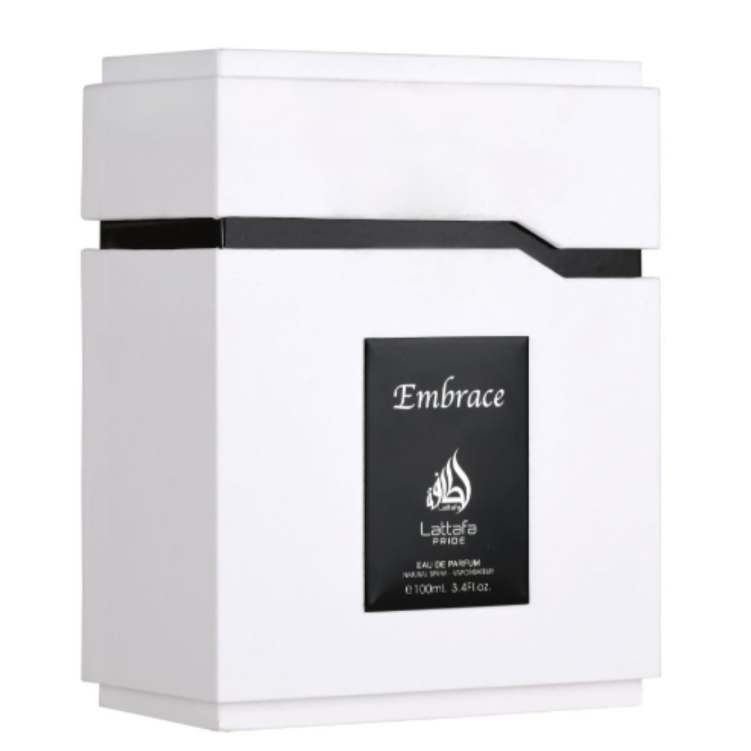 Embrace Perfume / Eau de Parfum 100ml de Lattafa Pride é uma fragrância cativante que combina uma gama de notas para criar uma experiência olfativa complexa e sedutora. Este perfume foi desenvolvido para pessoas que apreciam profundidade e sofisticação em seus aromas.
