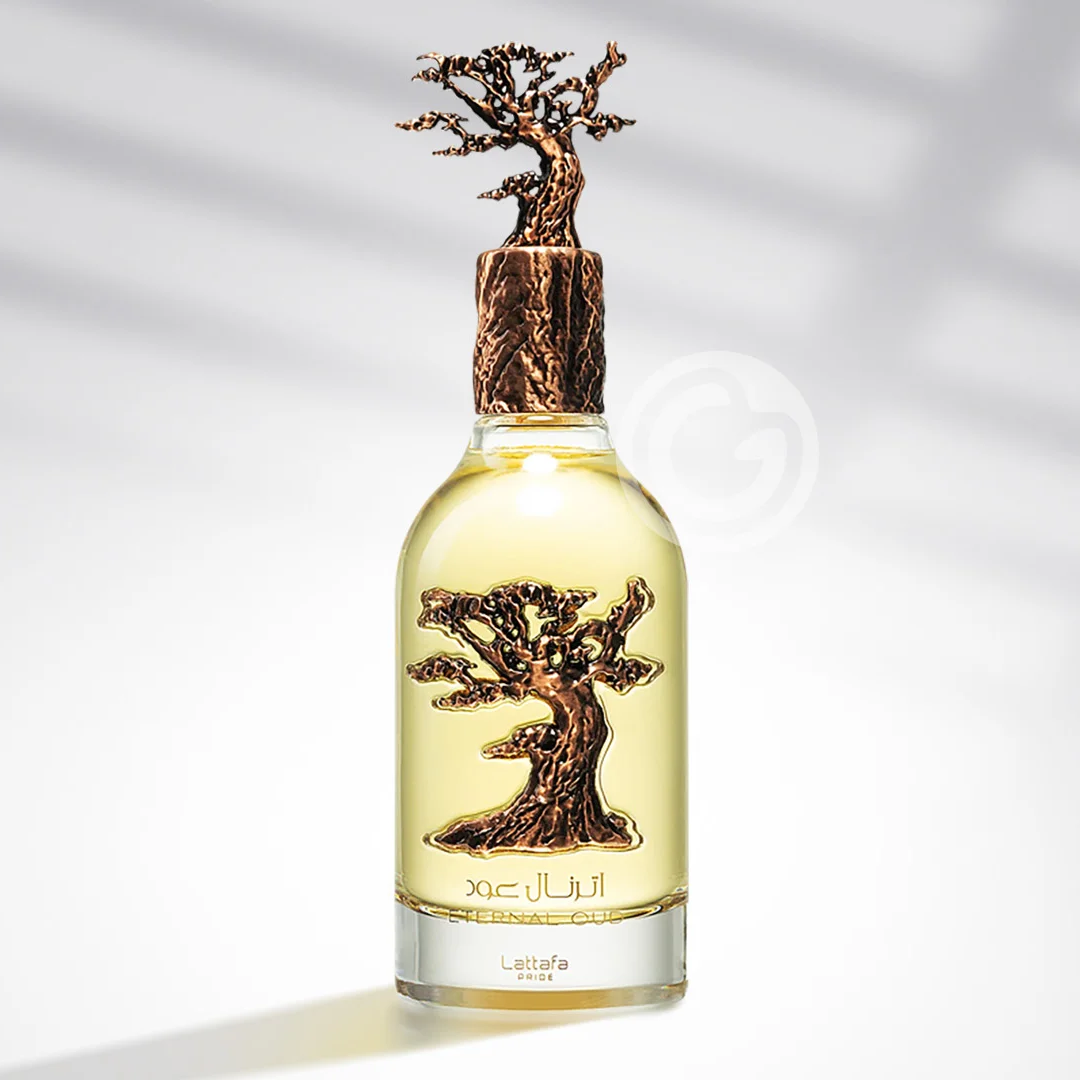 Eternal Oud de Lattafa Perfumes é um perfume Âmbar Compartilhável. Esta é uma nova fragrância. Eternal Oud foi lançada em 2022. As notas de topo são: Ameixa e Toranja. As notas de coração são: Heliotrópio e Orquídea. As notas de fundo são: Âmbar, Benjoim, Baunilha, Ládano, Fava Tonka e Agarwood (Oud).