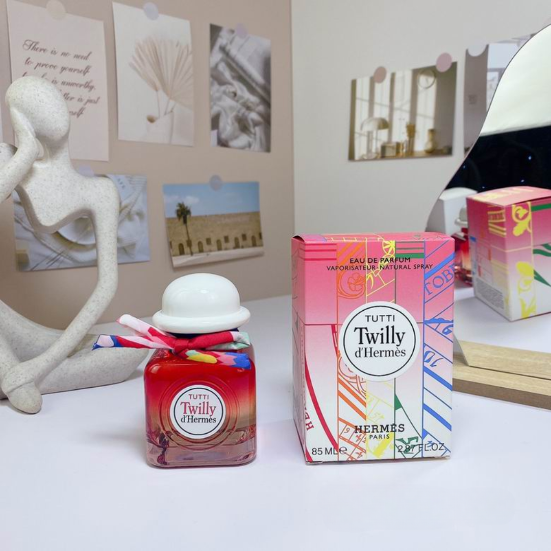 Tutti Twilly d'Hermès, criado por Christine Nagel, celebra o espírito livre das garotas Hermès com uma fragrância floral e frutada. Combina flor de gengibre suave, lichia doce e almíscar envolvente, resultando em um aroma quente e sensual.